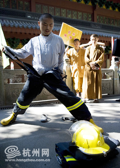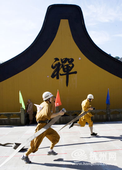 今天上午,“杭州市佛教界首届消防运动会”在灵隐寺拉开帷幕。