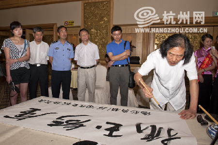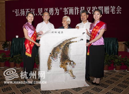 杭州网讯 8月24日上午,“弘扬正气,见义勇为”书法作品义拍捐赠笔会在杭州新侨饭店隆重举行。