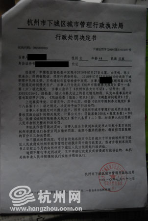 经过立案,下城区行政执法管理局决定对当事人进行处罚。不过让俞先生奇怪的是,自己接到的这份处罚决定书更像是一份情况说明,写得很详细,也很诚恳,口气也不像想象中那样强硬。