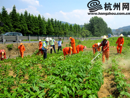 杭州网讯 8月25日上午7点,杭州市高速公路路政管理大队袁浦检测站,联合华龙养护公司对管辖的高速公路留下匝道中央公路用地内违法种植的多处菜地进行了一次彻底的清理。