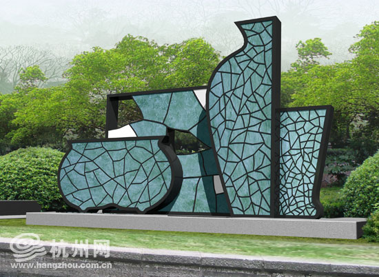 中河西侧的《南宋瓷器文化》青瓷雕塑,据说上面用得的都是南宋官窑。