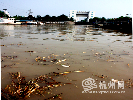 2010年,不请自来的是由钱塘江流入的大面积枯草根,据杭州市港航局航道养护管理处工作人员介绍,枯草根日日“造访”运河已达半月之久。