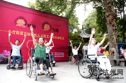 第八届全国残疾人运动会即将在杭州召开,小营街道也借着这个东风举办了这场“爱转动 梦飞翔”的首届残疾人文化艺术周,表演人员都是来自上城区残联艺术团和小营街道的残障人士,上城区残疾人联合会理事长童回春说,“残疾人朋友最需要的就是一个被认可的舞台,希望更多的街道社区能为他们搭建这样的平台。” |