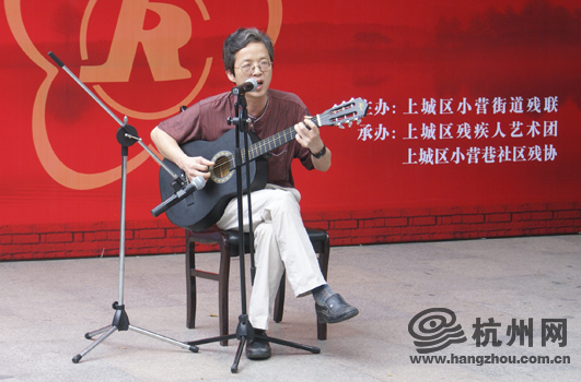 “20多年前还是个文艺青年,之后多少年没摸吉他了。”52岁的严成铭是上城区残疾人艺术团的成员,住在小营社区的他,今天抱着他心爱的吉他,在小营街道首届残疾人文化艺术周启动仪式上从容放歌,“几年前视力就几乎丧失了,自己成了一个残疾人,也多亏社区让我参加了艺术团,觉得自己还有用。”