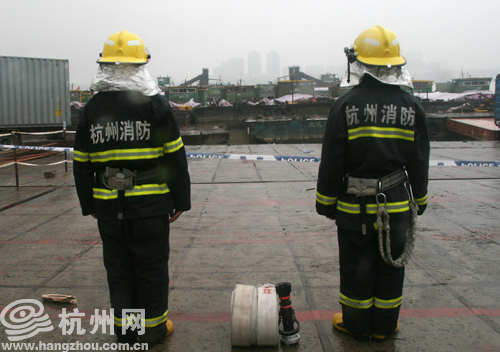 杭州之江消防中队的指导员沈晔告诉我们,在10月11日至10月16日烟花安装这7天内,之江消防中队派出了7名消防官兵、1辆消防车辆驻扎在码头,7人不分昼夜,轮班交替,吃盒饭,睡在消防车上,为的就是防止意外发生。