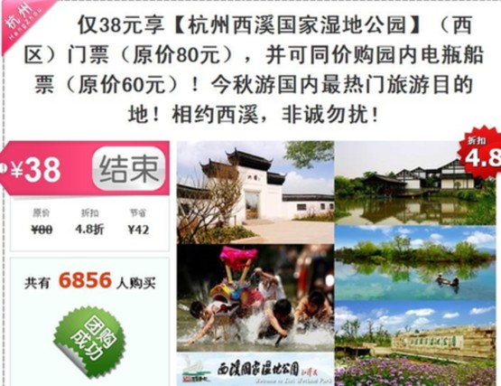 孙小姐在杭州呆了8年,却一直没有机会去游览西溪湿地,近期,她看到糯米网推出团购活动“38元享杭州西溪国家湿地公园(西区)门票”,就毫不犹豫地买了五张票。结果,和那位投诉的陈先生一样,她也没能游览到《非诚勿扰》里的东区。