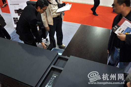 现场一款可以通过遥控实现自由伸展的家具吸引了不少参观者的眼球,看似一套简单的办公家具里面却藏有保险箱、电源以及多个可以伸缩的空间。“很节省空间,家里小一点都没事了。”参观的人群纷纷议论。据悉,这样一套办公家具售价在10万元人民币左右。