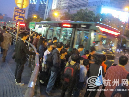 杭州网记者方剑锋郭媛贞现场发回报道:17:30,从市区开往滨江烟花大会主会场的983路公交车开出,车前等待的人群早已排成了长龙。家住德胜的孙先生今天全家出动,作为老杭州,已经领略过西湖和运河的烟花大会的魅力,孙先生说,现在去滨江很方便,直通车半个小时就到了,带着80的老娘也去见识下江景烟花大会。