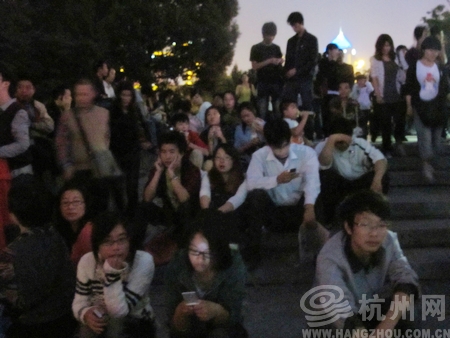 随着烟花大会分秒临近,为了保证大家的安全和观赏质量,民警和现场的保安人员已经将聚集在西湖文化广场的人们请到指定观赏点。