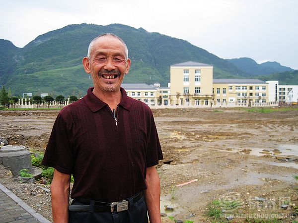 写黑板报的老人叫梁启军,今年65岁,是梁沙村一个普通百姓。浙川大道碑梁路的修建从门前经过,他顾全大局拆掉了自家房子,全家至今还住在活动板房里。老人说,与杭州援建干部职工的付出相比,自家这点损失根本微不足道,青川人懂得感恩,只是想通过这种特殊的方式表达对援建者的一份感激之情。问他觉得杭州援建队伍怎么样,老人大拇指一竖,一个韵味深长的“好”字说明了一切。