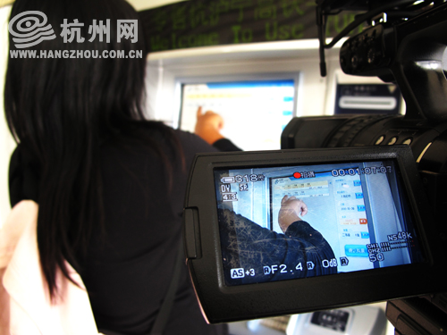 杭州网记者在体验高铁自助售票机的使用