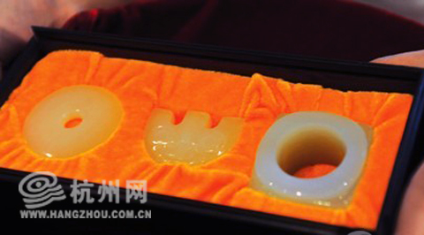 据悉,该命名仪式由中华玉文化中心和杭州良渚遗址管理区管委会共同主持,中华文化促进会常务副主席王石宣读“中华玉”命名文件。随后,三件一组的中华玉和其他精品玉器对外展示。