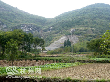 这些裸露的岩石就是原来万市镇开采矿山时留下的,到2012年,万市将关闭所有的矿山。