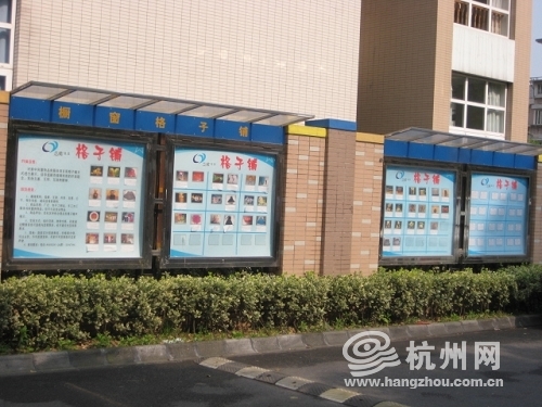 在兰苑社区北大门的宣传栏,杭州网记者看到了一个“橱窗格子铺”,里面整整齐齐地贴着居民闲置物品的照片,照片下方还有详细的交易说明:“儿童床一张,适合5岁以下儿童”,“万花筒一个,有意者联系QQ……”,“榨汁豆浆组合一套,9.5成新”……