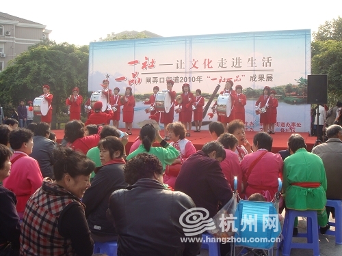 今天早上,闸弄口街道举行了2010年“一社一品”成果展。天杭、天仙等16个社区悉数上阵,拿出了平日里最具特色的文化项目。闸弄口社区的书画展览、天仙社区的葫芦丝演奏、机神社区的腰鼓表演、董家社区的古筝乐坊等,都获得了不少赞誉。