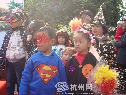 杭州网讯 10月31日是万圣夜,西方的孩子们在每年的今天,会打扮成小巫婆挨家挨户喊“Trick or Treat”(不给糖,就捣蛋)。而在今天上午的三里亭公园里,也出现了一群巫婆、超人、小精灵打扮的孩子,他们喊的是:“不要乱丢垃圾”。