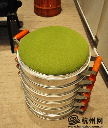 更奇特的是,零碳馆中的指示牌都是用没用的晒衣架和T-shirt做的。 |