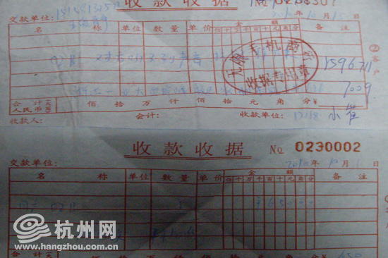 王小姐购买手机的单据。