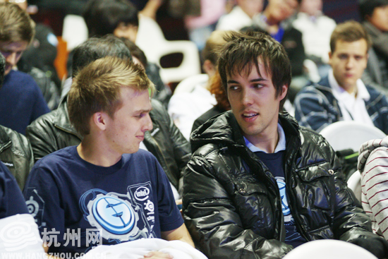 来自荷兰的“兽王”Grubby(右)一出现,就引起大批粉丝的尖叫。