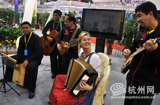 杭州网讯 当杭州的龙井遇上台湾的高山茶,还有远道而来的斯里兰卡红茶,你会选择谁呢?今天上午,在菲律宾乐团和俄罗斯姑娘载歌载舞的演出中,第五届中国国际休闲产业博览会在和平会展中心拉开帷幕。本次展会为期4天,吸引了近22个国家和地区的38家国际机构参加,国际展位近100个。