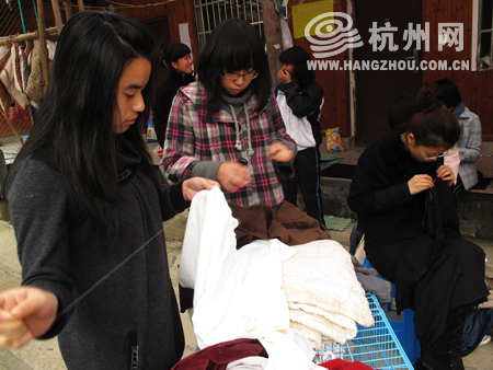 天气渐冷,义工们要自己动手缝制御寒棉被。