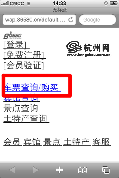 7.通过手机上wap.86580.cn网站购票。
