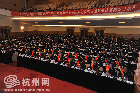 杭州网讯 1月11日,杭州市公安工作会议召开,浙江省委常委,杭州市委书记黄坤明,杭州市委副书记、代市长邵占维,杭州市委副书记、市纪委书记、市委政法委书记叶明,市委常委、副市长杨戌标,市政协副主席俞国庆出席会议。