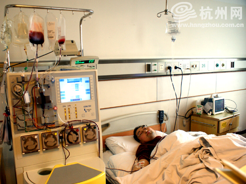 接受杭州网记者采访时,郑卫军说,昨天的酸痛已经消去,只是扎在手臂上的管口有些不舒服,但不妨碍正常交流。