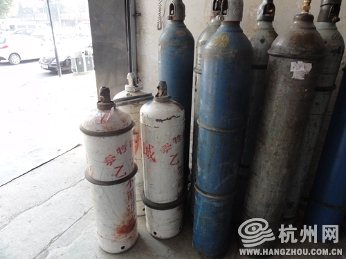 众所周知危化品的门市部是不能设在市区居民集中地的,即使设立门市部,要求置放空瓶,不能放有气体的在门市部里,尤其丁烷和乙炔两种气体不能混放在一起。就在杭州网记者前往临安采访期间,又有举报人举报,临安市的市区有一个门市部里,有一家销售气体的销售点,将两种不能混合放在一起的气体,违规的放在了一起。