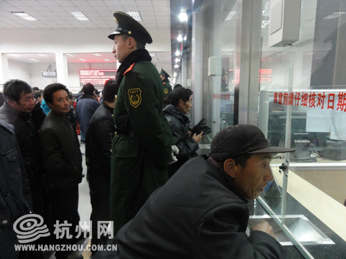 车站工作人员告诉杭网记者,目前杭州南站有44个售票窗口,临时售票窗口有28个,还有各个代理售票点。老的火车东站有74个售票点,还有城站火车站的售票点及嘉兴、金华、宁波、等这些售票点与全国售票点是联网的,一旦车票到了网上,全国有这么多的旅客排队同时购票,车票卖的很快,所以在某一个购票点,即使你排在第一,或第二,也不能保证买到需要的票,尤其是客流量大的几条线路,这一点请旅客能够理解,并告知旅客,目前所有的车票都在售票窗口发售,只要有票,就一定会对外卖,铁路职工及负责人绝不会出现留票和关系票。