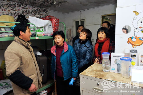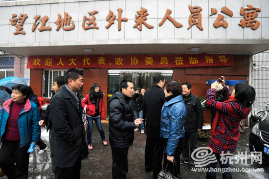 市人大代表和市政协委员一行冒雪考察了“新杭州人”在杭州的“第二个家”——上城区望江地区外来人员公寓。