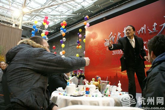 为感谢在杭外国友人对杭州发展所做出的努力,增进交流,杭州市对外文化交流协会,杭州市国际访问交流中心特此举办了这场联谊活动。特别安排了民间艺人表演、互动表演等轻松活泼的内容。