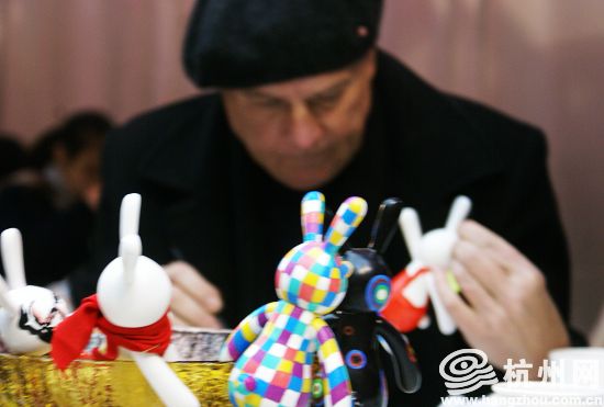 大家纷纷发挥自己的想象力,在一个个白色的兔身上画上自己设计的图案。
