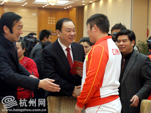 身为国家盲人门球队主力队员蔡长贵,今天也出席了活动并受到市领导的亲切接见。接受杭州网记者采访时,他说“过去的2010年是自己最引以为豪的一年”。2010年,他和队员多次站在最高领奖台,为国家赢得了荣誉。“盲人门球是一个集体项目,需要和队员之间相当的默契,所以平时训练我们从来不敢懈怠。”