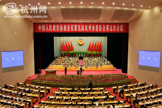 中国人民政治协商会议第九届杭州市委员会第五次会议圆满完成了各项议程,今天上午在省人民大会堂胜利闭幕。