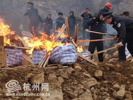 杭州网讯 1月26日下午,省公安厅禁毒总队在杭州市天子岭废弃物处理总厂,销毁各类毒品近500千克。