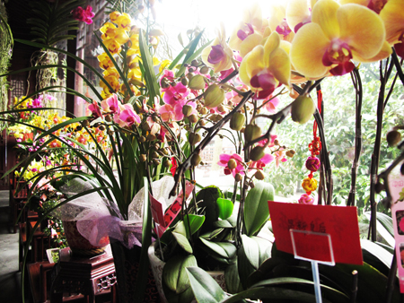 暖房里的珍贵花卉一片姹紫嫣红。
