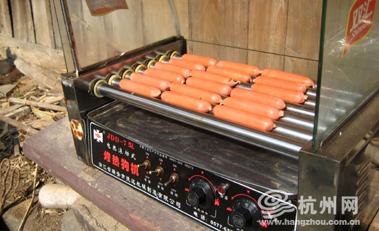 哥哥搬来的烤热狗机,哈哈!我说别这么夸张的嘛。