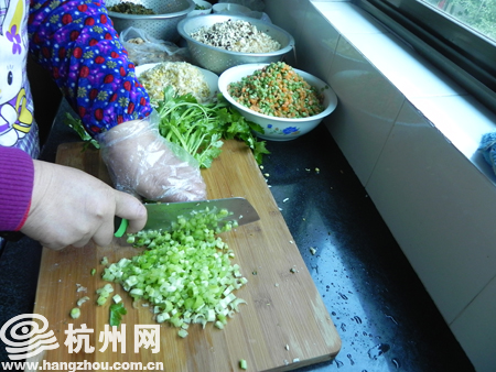 1.将各色配料洗净切末,包括冬笋、带豆、胡萝卜,芹菜、青菜、雪里蕻,空心腐、香干、豆芽,花生米、虾米、瘦肉等,适个人口味择爱取之。