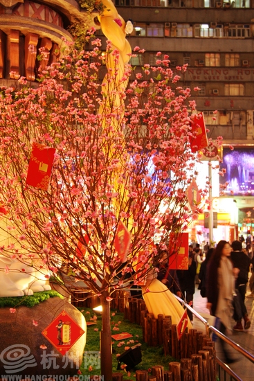挂满利是包的桃花树
