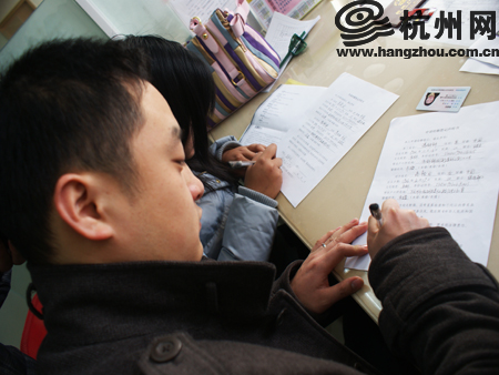 记者在登记大厅见到了准备办理登记手续的年轻人小李和男朋友小刘。他们告诉记者,早上七点不到,他们就到西湖区民政局的,“今天来登记的人肯定很多,我们想早点来,省得排队。”小李说,选择今天登记也是考虑了很久:“一般情人节登记比较有纪念意义嘛,以后也好记一点,情人节加上结婚的日子,会感觉比较甜蜜。”小李说。