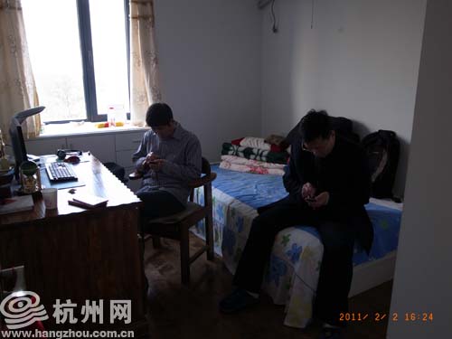 年三十下午,爸爸和大舅正忙着给朋友发祝福短信。