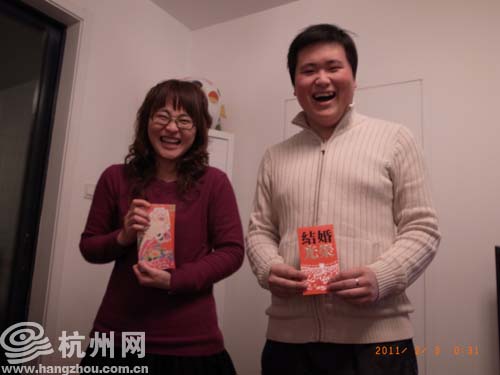 弟弟跟女朋友拿着我给的红包笑的合不拢嘴。