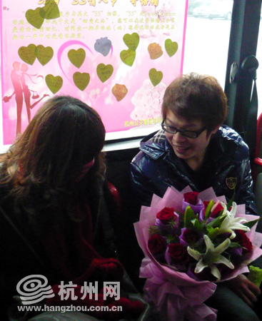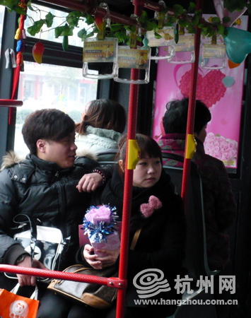 今天是西方的情人节,在杭州,人们似乎早已把它看成了为自己寻找甜蜜的一个借口。市公交电车分公司在这一天推出了“SS情人节专车”,成为了不少夫妻情侣浪漫的节目。