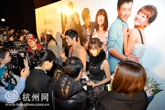 而今天,《我们约会吧》的主创伴着漫天的雪花来到杭州,在杭州百老汇电影城举行了简短的影迷见面会。
