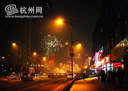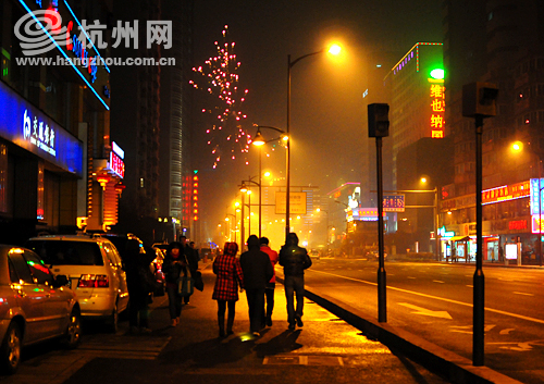 从朝晖步行至西湖文化广场,一路都有烟花可看。