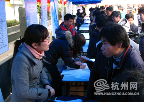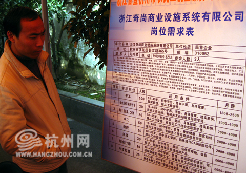新通力工业有限公司今年新增了几条生产线,急需招聘普工工人60名。其负责招聘的工作人员介绍,他们企业位于富阳,为了尽可能留住一部分求职者,单位甚至派车迎接这些前来应聘的人。即便如此,真正买账的人却不多。两个多小时内,达成求职意向并留下联系方式的仅有四五人。