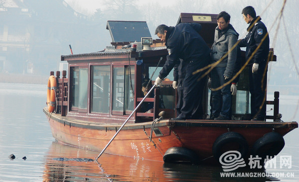 在西湖边清理残荷的环卫工人也告诉记者,他们七点多来到了西泠桥西荷花池围网边,突然他看到在离岸边大概有10多米远的地方,飘着团黑色的东西,划过去一看,发现了女尸。“当时看到有尸体,我们都吓坏了,赶紧向领导汇报,同时拨打了110报警。”一名环卫工人说,“当时女士头和脚都在水下面,只有一个背部露出了水面。长发,上面穿着一件黑色羽绒衣,脚上穿着高跟鞋。”
