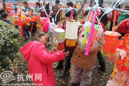 这不,元宵节刚过,却搞起了灯展,每个小朋友手里都提着一个小灯笼,争先恐后地让老师帮忙挂起来,不一会小操场上就挂满了一个个俏皮可爱小灯笼。