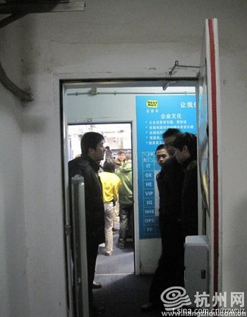 爆料网友发布了一张百思买只容员工进入,并重重把手的边门。(图片来源:新浪微博)